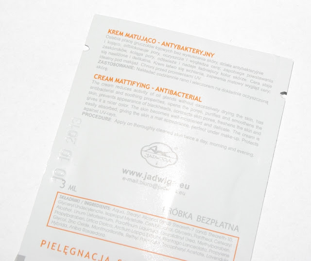 Błyskawicznie się wchłania, nie zostawia filmu na twarzy i można dość szybko zabrać się za makijaż (nadaje się do używania pod makijaż, nic się nie roluje). Nie jest to typowy krem matujący (całe szczęście! nie znoszę tego uczucia, jak moja skóra dusi się pod kremem!), pozostawia skórę lekko zmatowioną, nie świeci się, jednak zwolenniczki intensywnego matu mogą być zawiedzione. Dla mnie to akurat ogromny plus, gdyż uwielbiam w nim tą lekkość ;)