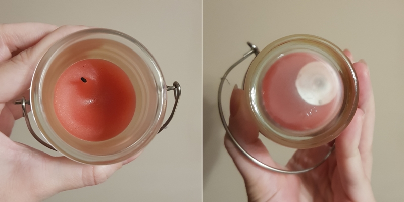 ~ Sampler Village Candle Cherry Vanilla Swirl - ciekawy zapach, ale nie taki, abym chciała do niego wrócić. Trochę owocowy, trochę wiercący w nosie (specyficzny zapach wiśni), trochę słodki. W moim samplerze knot był umiejscowiony tak krzywo, że już gorzej się nie dało (zdjęcie niżej)